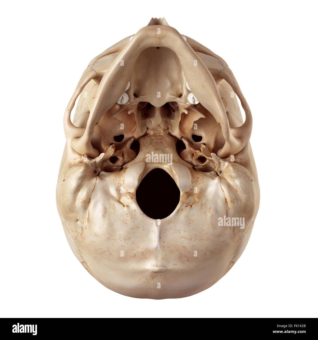 Inferior view of the base of the skull: Anatomy - Kenhub The parietal bones are difficult to visualise from the inferior view of the skull, however they can be seen articulating with the temporal and occipital bones. They form the posterosuperior part of the skull. Clinical points Young children who present with cleft palate have a failure of the two maxillae to unite in the midline.