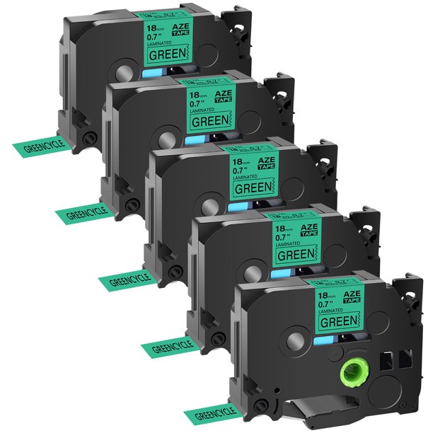 GREENCYCLE 5PK Black on Green 18mm 8m TZ TZe TZe-741 TZ-741 TZe741 TZ741 Laminated Label Tape for Brother PT-300 PT-310 T-320 PT-330 PT-340 PT-350 ...