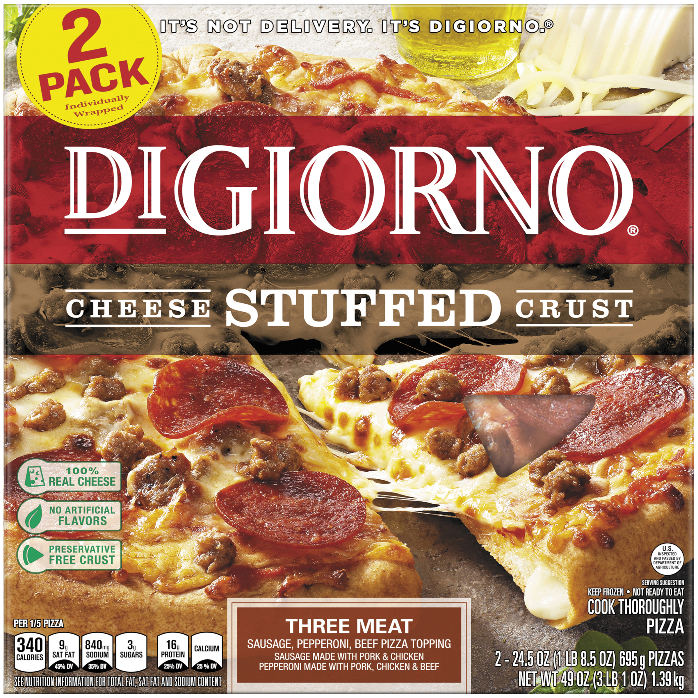 Digiorno Pepperoni Traditional Crust Frozen Pizza Description Fresh-baked taste in minutes Delicious traditional style crust Good source of calcium (see nutrition information for Saturated Fat, and Sodium content) Small size, big flavor! DIGIORNO Pepperoni Traditional Crust Small pizza is loaded with juicy pepperoni. Get the same great taste you love in a smaller size. Our T...