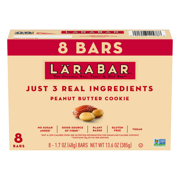 Lara bars nutrition label. Our Products - LARABAR LÄRABAR ®, the Original Fruit & Nut Bar ™, is a delicious gluten free blend of unsweetened fruits, nuts, and spices. Made from whole food, each indulgent flavor contains no more than 9 ingredients - minimally processed, and as close to their natural state as possible. Almond Butter Chocolate Chip. Almond Cookie. Apple Pie. Our Ingredients | Dietary & Nutritional Information - Larabar SIMPLE. Our Larabar products are just a simple blend of just 3-6 ingredients like whole nuts and fruits - and sometimes delicious chocolate chips! Plus, there's no fake stuff. We never use artificial flavors, preservatives or sweeteners. Simply put, its food made from food. Calories in Larabar Cherry Pie and Nutrition Facts - FatSecret 7g. Carbs. 28g. Protein. 4g. There are 200 calories in 1 bar (48 g) of Larabar Cherry Pie. Calorie breakdown: 33% fat, 59% carbs, 8% protein. Vegan & Gluten-Free Snack Bars | Simple. Pure. Delicious. - Larabar LÄRABAR makes real food from food. Our snack bars use simple, wholesome ingredients to make you feel good. We're gluten-free, vegan, Kosher and non-GMO.