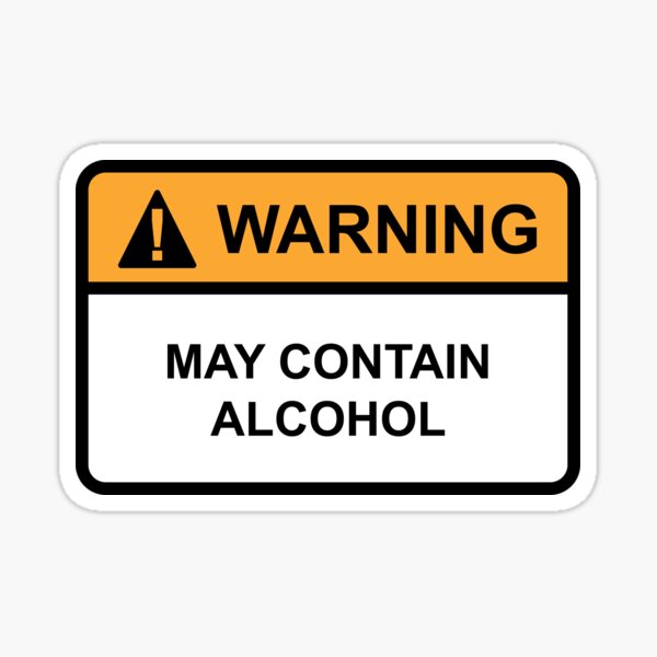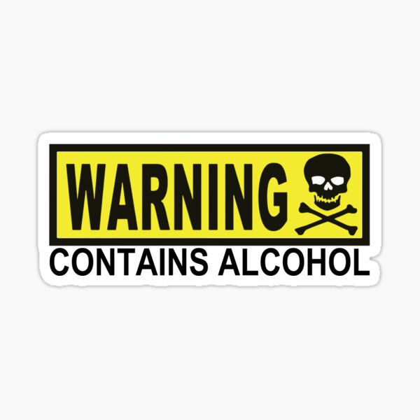 (Medium 3 Pack) Alcohol / Beer / Wine - Government Warning Label for ... alcohol sticker labels contains alcohol sticker Product Description Government Warning Label / Sticker for Growlers. These labels are perfect for your craft beer growler (or wine and spirit containers). Bars and breweries in most states are not permitted to fill growlers without a government warning label.
