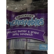 Peanut Butter and Grape Jelly Sandwich | Uncrustables® Enjoy the classic taste of grape jelly and peanut butter in a new way. Wherever you are, just thaw, unwrap, and enjoy. Available Sizes: 4 Count (2 OZ Sandwiches), 10 Count (2 OZ Sandwiches), 15 Count (2 OZ Sandwiches), 18 Count (2.8 OZ Sandwiches) Uncrustables, Peanut Butter Sandwich Nutrition Facts - Eat This Much 20g Carbs. (18g net carbs) 11g Fat. 7g Protein. No price info. grams sandwich. Nutrition Facts. For a Serving Size of 1 sandwich ( 52 g) How many calories are in Uncrustables, Peanut Butter Sandwich?