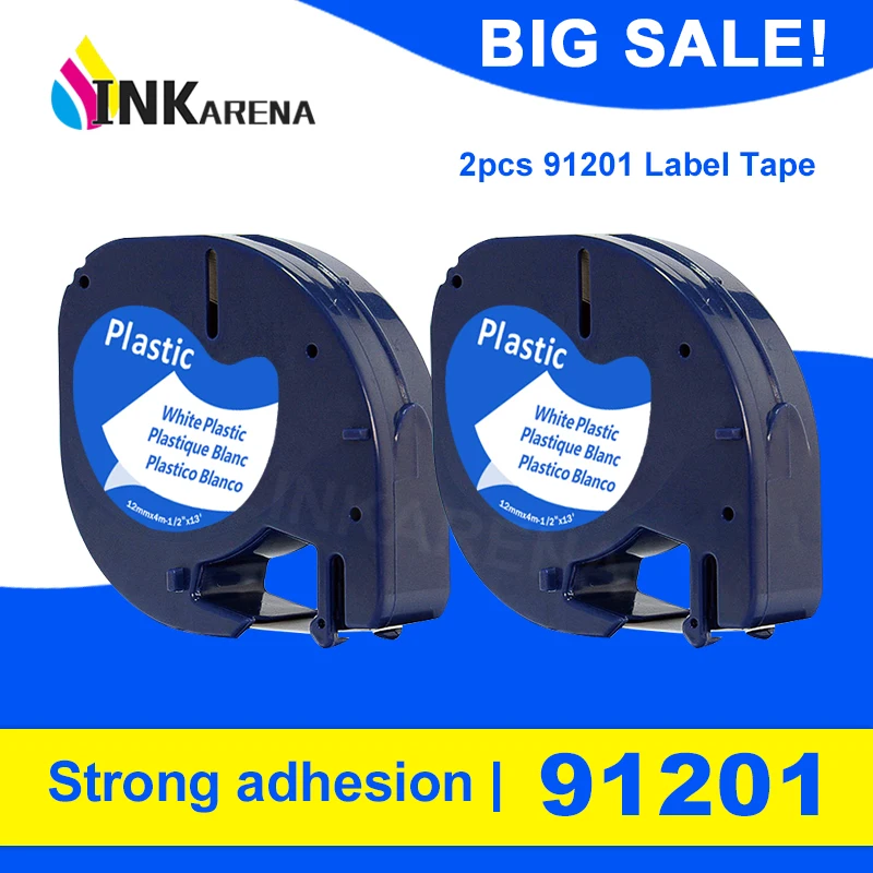 INKARENA 2 Pack Compatible Dymo 91201 Label Tape Black on White 12mm X 4M For LetraTag Plus LT100H LT100T Printer Ribbons