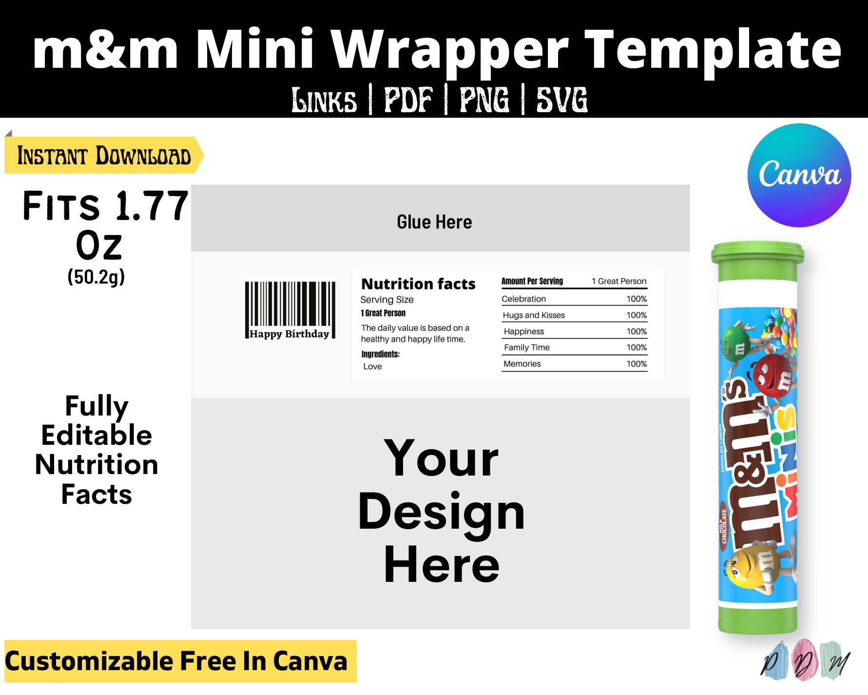 Label Sizes for M&M's® Containers | OnlineLabels® Find Label Sizes for M&M's®. While we don't sell M&M's® containers or products, we do have the ideal labels to use to brand them in your own unique way! To get started, find the container you're working with below. Then choose the best label for the job! OnlineLabels does not sell any of the containers, bottles, or boxes listed in this section.