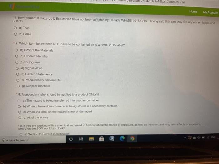 OSHA MODULE Flashcards | Quizlet The way in which a chemical can enter your body are inhalation, absorption, ingestion or injection. True. ... According to labeling guidelines, only two "Signal Words" can appear on a label. One is "Danger" and the other is: Warning. As a healthcare worker, which of the following would NOT be considered your responsibility? ...