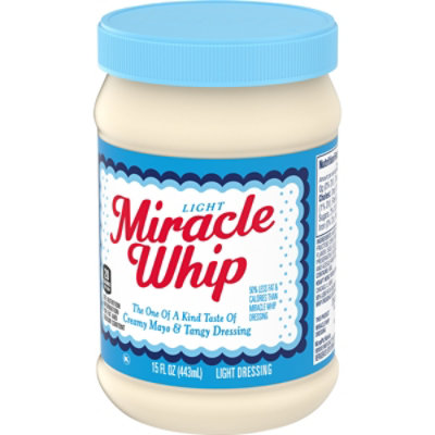 Miracle Whip Mayo Like Dressing for a Keto and Low Carb Lifestyle ... Miracle Whip contains fewer calories and fat than Kraft Mayonnaise and is also keto friendly, and great for those living a low carb lifestyle. Calories in Miracle Whip Light Mayo - SparkPeople Calories in Miracle Whip Light Mayo ; 0.0 mg · 3.0 g · 0.0 g · 0.0 g · 0.0 g ... Miracle Whip vs. Mayo: What’s the Difference? - Healthline Jul 22, 2019 · Miracle Whip is also made with soybean oil, which has been shown to induce inflammation in some animal and test-tube studies (8, 9). Additionally, Miracle Whip contains additives . Kraft Miracle Whip Original Dressing - Shop Condiments at H-E-B Total Carbohydrate 2g, 1% ; Total Sugars 1g ; Added Sugars 1g, 3% ; Protein 0g ...