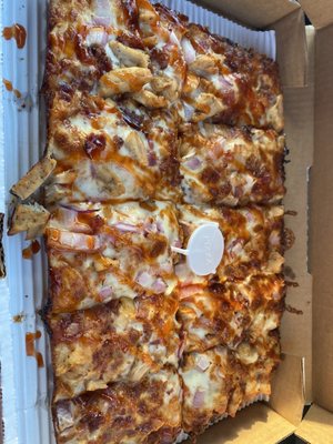 Calories in Blackjack Pizza Thin & Crispy Crust Chicken, Bacon Ranch ... There are 258 calories in 1 slice, 1/8 pizza of Blackjack Pizza Thin & Crispy Crust Chicken, Bacon Ranch Pizza, medium. You'd need to walk 72 minutes to burn 258 calories. Visit CalorieKing to see calorie count and nutrient data for all portion sizes.