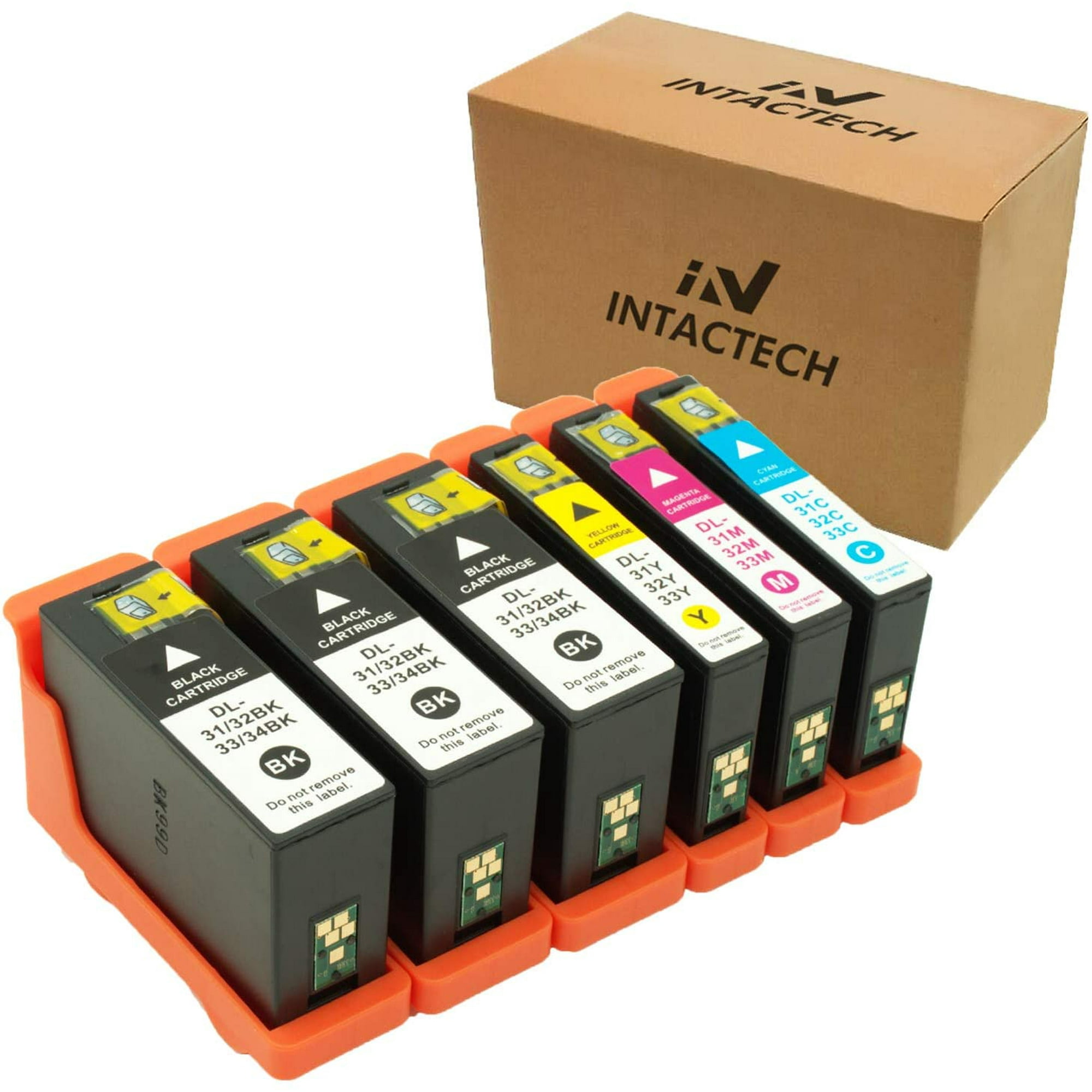 Intactech 2 Pack Comapatible With Dell V525W V725W Black Ink Cartridges Replacement For Dell Series 31 32 33 34 Black Ink Cartridges Work For Dell ...
