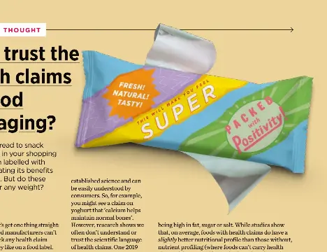 Introduction to Food Product Claims — FDA Reader Example of a Health Claim: "Diets low in sodium may reduce the risk of high blood pressure, a disease associated with many factors." Not a Health Claim: "fruits and vegetables contribute to good dietary health" This is not a health claim because no assertion is made about the reduced risk of a disease or health condition. 14 common food package claims - Mayo Clinic Health System Learn the meanings of 14 common food package claims so you can make wise choices the next time you're at the grocery store: 1. Calorie-free. Less than 5 calories. 2. Fat-free or sugar-free. Less than ½ gram of fat or sugar. 3. Gluten-free, no gluten, free of gluten or without gluten.