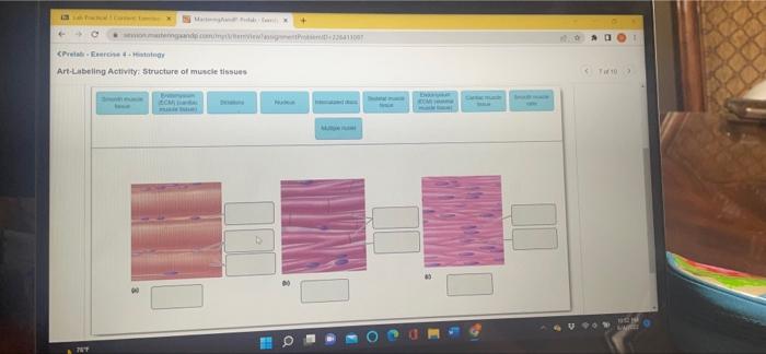 Art labeling Activity The Structure of a Skeletal Muscle... Art-labeling Activity: The Structure of a Skeletal Muscle Fiber Drag the labels onto the diagram to identify structural features associated with a skeletal muscle fiber. Part A Drag the labels onto the diagram to identify structural features associated with a skeletal muscle fiber. Chapter 3: Lab 3 Mastering Assignment Questions Flashcards Art-labeling Activity: Figure 3.2 2 of 2 Which of the following is NOT one of the three major components of a typical eukaryotic cell? 1. Ribosome 2. Cytoplasm 3. Plasma membrane 4. Nucleus Ribosome Ribosomes are organelles and they are located within one of the major components of the cell. Answer correct art based question chapter 4 question - Course Hero Art-Labeling Activity: Structure of muscle tissues Part A nose external ear intervertebral discs fetal skeleton True False intercalated disks dendrites nuclei striations 1/29/2020 Mastering Homework Assignment #3 - Week 3: Histology 15/24Drag the appropriate labels to their respective targets. art-labeling activity: basic anatomy of the skin Basic Anatomy Of The Skin. Structure of the epidermis part a drag the appropriate labels to their respective targets. The epithelium is a type of body tissue that forms the covering on all internal and external surfaces of your body lines body cavities and hollow organs and is the major tissue in glands. Art-labeling Activities Art-labeling ...