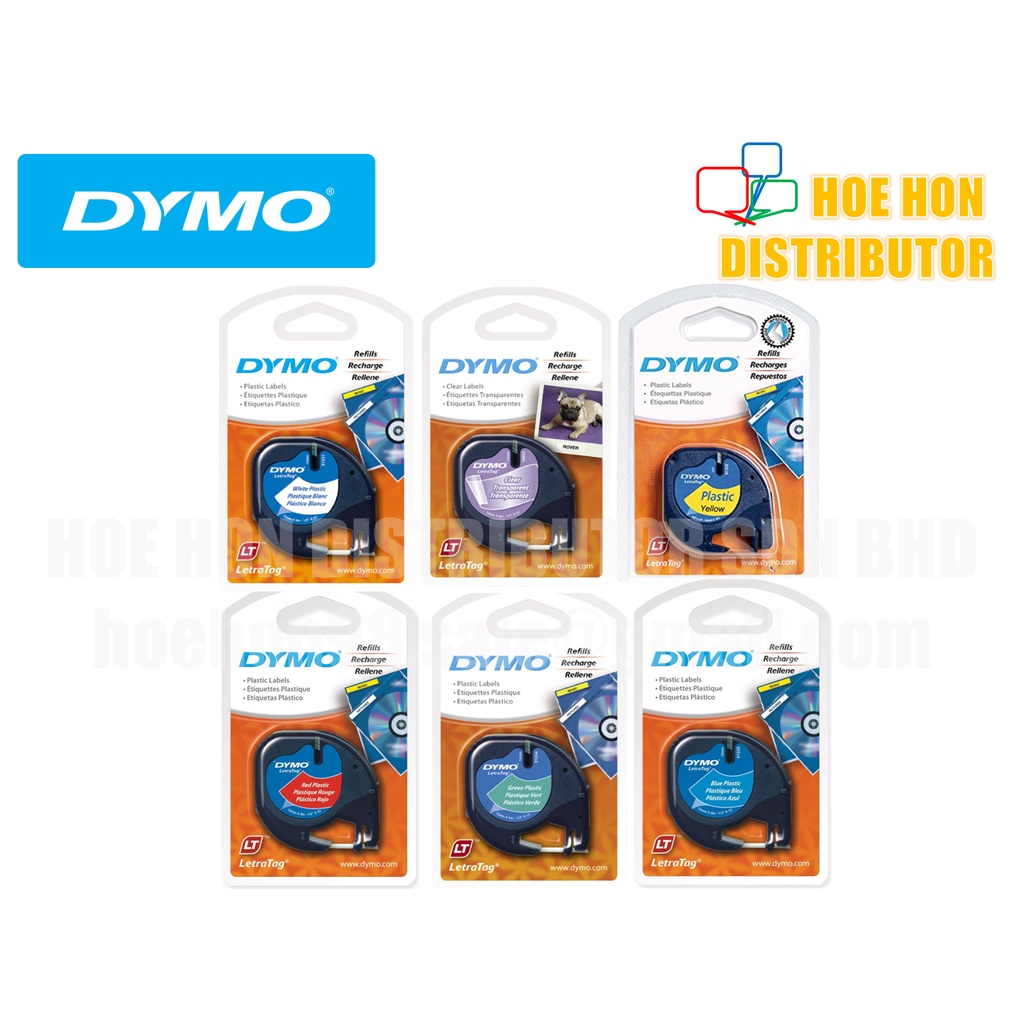 DYMO LetraTag Plastic Labels DYMO LetraTag labels are tough and tear-resistant. These plastic DYMO labels print black ... easy-peel, tear resistant, great for the home, no ink or toner.