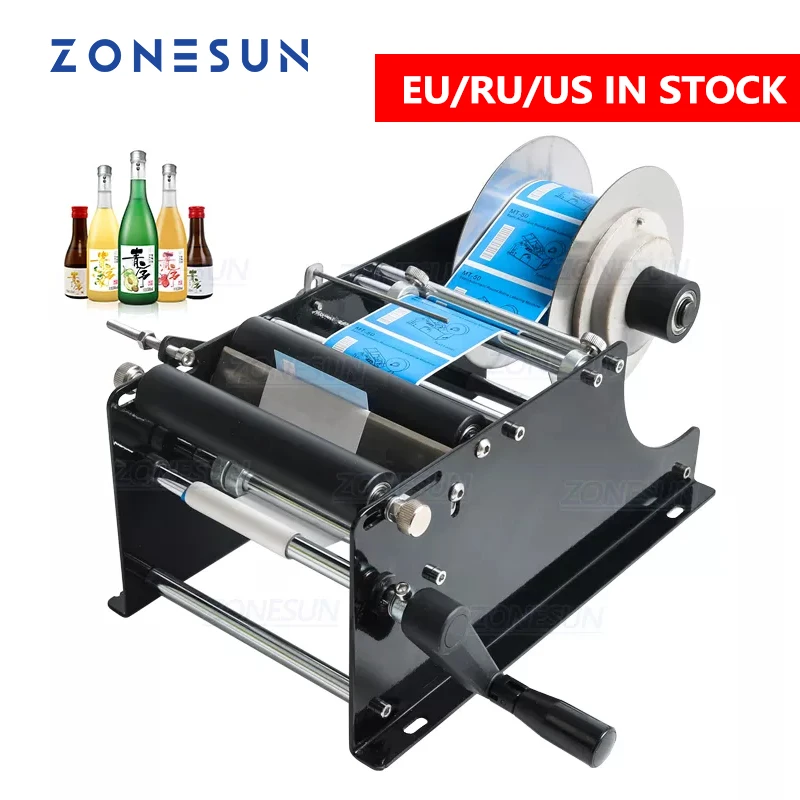 ZONESUN Simple Manual Handy Labeling Machine PET Plastic Round Water Bottle Sticker Packaging Labels Cosmetic Juice DIY Tools